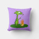 Um belo dragão de desenho animado com grandes olhos devotos e uma buzina amarela tostando um marshmallow sobre um fogo do acampamento. Arte digital original de Taylor Addams. travesseiro excelente para uma garotinha ou quarto de menino. Mude a cor de fundo para se adequar à decoração do nosso filho!