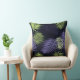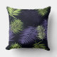 Travesseiro decorativo em cores roxas e verdes escuras. Esta design apresenta um padrão espantoso de um jardim de verão de palmeiras bonitinhas e modernas.