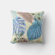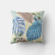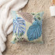 Almofada Folhas tropicais azuis e roxas.