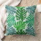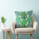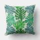 Travesseiro decorativo em cores azul e verde. Esta design é um padrão maravilhoso de jardim de verão com folhas de palma bonitinhas e modernas.
