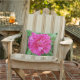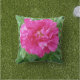 Destaque seu decor ao ar livre com travesseiros botânicos. Este travesseiro floral de verão apresenta uma pénia cor-de-rosa com folhas verdes e peludas.