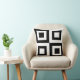 Travesseiro moderno de forma geométrica quadrada a preto e branco.