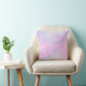 Um travesseiro com um padrão de fundo abstrato. As aquarelas roxas e azuis cor-de-rosa formam este design artístico que apresenta formas retangulares verticais sobre um fundo malhado.