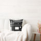 Este travesseiro decorativo branco sobre abstrato de arte preto é feito com formas geométricas brancas sobre um fundo de preto, criado pelo artista Kirt Tisdale.