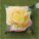 Uma foto original de uma rosa da paz crescendo no meu jardim. Tem pétalas macias, amarelo dourado e rosa com folhas verde-escuras. Simboliza paz. Mostrada aqui em uma almofada de lançamento personalizada para exterior. Personalize com qualquer texto em vez de "Paz" mostrado aqui. Belo modo de desfrutar um toque da natureza.