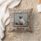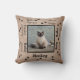 Travesseiro decorativo personalizado do seu cão ou gato. Personalizável com sua foto e nome. Quando você muda o nome para o nome do seu animal de estimação, ele muda todos os nomes ao mesmo tempo. Estilos de fontes diferentes em preto com estampas de pata que andam pela borda. O fundo é um chá rústico manchado de um olhar de linho. É completamente personalizável. Você pode alterar estilos, tamanhos e cores de fonte.