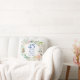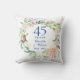 Com uma delicada grinalda floral em aquarela, este travesseiro comemorativo de aniversário de casamento de 45 ou 65 anos pode ser personalizado com os detalhes do seu aniversário em tipografia azul safira elegante e sua foto no verso. Criado por Thisisnotme©