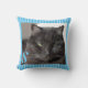 Travesseiro de fotos de gata de ponta turquesa. Substitua a foto por sua e adicione seu monograma.