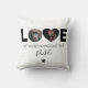 Travesseiro de fotos bonitinho, LOVE com 2 opções de fotos e uma mensagem pessoal, nome de animais de estimação por baixo e uma impressão de pata. Este travesseiro é o presente ideal para qualquer membro da família, amigo ou colega, perfeito para todas as ocasiões e eventos da vida. Os estilos de fonte, tamanhos e cores podem ser alterados clicando no link personalizar depois de personalizar.