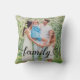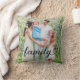O travesseiro decorativo personalizado moderno e na moda apresenta uma(s) foto(s) favorita(s) com um design mínimo de camada de tipografia "familiar" que inclui detalhes elegantes e cardíacos. A cor do texto preto pode ser modificada. 2 design de frente/verso de fotos permite que você inclua uma foto na frente e atrás ou duas fotos diferentes.