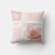 Anuncie o nascimento do seu novo bebê com este travesseiro decorativo de padrão diagonal de gingham de rosa claro doce. Personalize adicionando uma foto, um nome e a data de nascimento da sua menina.