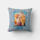 Travesseiro decorativo decorativo em um bonito fundo de mosaico azul e rosa com foto e nome. Esta design é repetida em ambos os lados do travesseiro.