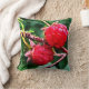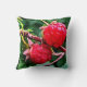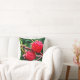 Framboesas vermelhas selvagens são o tema deste travesseiro decorativo de arte. Duas bagas suculentas de cor cerosa estão ligadas aos ramos castanho-avermelhados. Folhas verdes e um fundo de turquesa aqua completam o desenho abstrato. A fotografia foi digitalmente melhorada para criar um sentimento impressionista.
