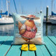 Esta ilustração caprichosa com tema de praia apresenta um charmoso casal de galinhas se bronzeando ao sol com suas melhores roupas de férias. A galinha usa um vestido vermelho retrô com bolinhas e um chapéu de sol de abas largas e óculos de sol grandes, enquanto o galo ostenta um short de natação listrado de azul e branco e óculos de sol, tudo isso contra um cenário sereno à beira-mar com veleiros, gaivotas e ondas suaves. A paleta de cores pastéis suaves e o estilo pictórico adicionam um sentimento sonhador e alegre que evoca relaxamento de verão e humor excêntrico. Ideal para os amantes de designs engraçados de animais, temas costeiros ou moda retrô, essa imagem divertida traz personalidade e calor para qualquer ambiente. Seja exibida em uma casa de praia, cozinha ou compartilhada online para um sorriso, ela conv
