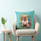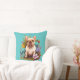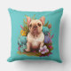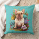 A Floral Design With Tan French Bull Dog On One Side And A Solid Beige On Other Throw Pillow