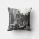 Kick back with this iconic throw pillow featuring a vintage black and white image of a dog walker with a group of french bulldogs in the city. The back side of the pillow features the same vintage photo.