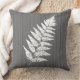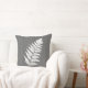 O travesseiro decorativo em uma silhueta de uma única fronda da samambaia, no branco, contra umas cinzas de carvão vegetal/cinza, seda de shantung do falso textured o fundo