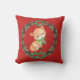 Travesseiro decorativo festivo apresenta raposa branca e coroa oca-cola em fundo vermelho. Personalizar com nome ou mensagem especial no retorno