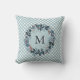 Almofada de Natal com Frutas Vermelhas de Azevinho e Gingham Azul-marinho e Borgonha... Nossa almofada de Natal apresenta uma grinalda de folhas de azevinho, frutas vermelhas e ramos de pinheiro em tons de azul-marinho e vermelho borgonha contra um fundo xadrez gingham azul-marinho e branco. O monograma inicial pode ser facilmente revisado no modelo de personalização.