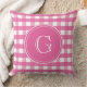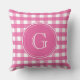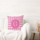 Um padrão brilhante brilhante, cor-de-rosa e branco, de gingham é o fundo de um grande monograma inicial. Ambos os lados são idênticos, pelo que só é necessário acrescentar o primeiro. Na moda é excelente para uma varanda solar, um quarto ou uma sala de estar, especialmente. Talvez um quarto de dormitório também! O padrão verificado pelo eterno funciona com outros designs geométricos. Disponível em várias cores.