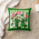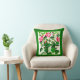 Travesseiro decorativo em vintage, desenho medieval das flores cor-de-rosa-rosa do Hibiscus italiano, com uma fronteira verde esmeralda