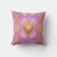 AI Art Pink Hearts Travesseiro decorativo Lavanda Background Este é um bonito corações e flores design, criado com arte artificial de inteligência. A imagem parece antiga e delicada. Esta é uma composição artística. O design é uma pintura abstrato de corações cor-de-rosa simétricos sobre um fundo de lavanda macio. Há um coração cor-de-rosa num coração de ouro. A arte lembra os padrões ouros de Klimt com cores vivas. Esta adorável travesseiro é feita nos EUA.
