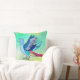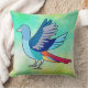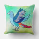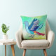 Um pássaro estilizado apresenta uma variedade vibrante de blues com sotaques de vermelho e laranja em suas asas e cauda. Suas linhas simplistas e ousadas lhe dão um olhar moderno e cartoonista. Fundo de mármore verde-amarelo