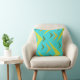 Almofada Fundo turquesa com cinza de setas e amarelo