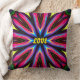 This is not a pillow for any minimalist, this is for the one who is in love with bright shout-in-your-face colors. Front side of the pillow is a large pattern with the option to customise the text in the middle. The back side shows the same pattern, but smaller and repeated which makes a whole different image option to display.