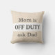 Almofada Funny Mom Is Off Duty Ask Dad Simple Custom