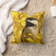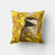 Aqui está um travesseiro floral que apresenta um adorável grão-de-bico preto e branco entre flores douradas e da forítia amarela. Este pequeno pássaro é uma das criaturas mais amigáveis do reino animal. Uma ideia de excelente para jardineiros ou passarinhos!