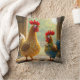 Cena cômica mostra duas galinhas em pé na porta do celeiro vestindo roupas