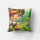 Almofada Garota com Olhos Grandes e Sapo Verde