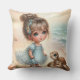 Uma Menina Adorável Na Praia Com Seu Travesseiro decorativo De Turtle Childs
