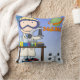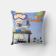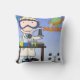 Boy in Science Lab travesseiro, apresenta um rapaz cientista em um casaco de laboratório e óculos de segurança no laboratório trabalhando com béquer, microscópio e tubos de teste.