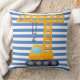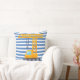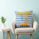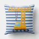 Grua amarela com almofada quadrada Blue Stripes. ETIQUETAS: almofada de guindaste, grua amarela, almofada, crianças, azul, digger, construção, rapaz, fofo, equipamento, equipamento pesado de construção, para crianças
