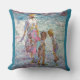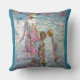 A mother, sunhat gently tilted, guides two children through a shimmering tidepool of color and light. They bend in curiosity, searching for sea-treasures beneath the ripples — shells, stones, maybe memories. The scene captures the innocence of childhood and the quiet strength of maternal presence. Waves glisten in hues of turquoise and lavender, while soft shadows dance in sun-washed sand. There's movement, but also stillness — like a moment suspended in warm salt air.