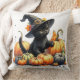 Almofada Gatinho do Dia das Bruxas Negro com Pumpkins e Cha