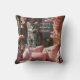 Um travesseiro romântico engraçado apresentando um gatinho em um banco de balanço cor-de-rosa com flores. Bom para um amante de gato e Dia de as mães ou Dia de os namorados.
