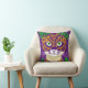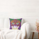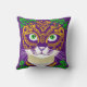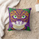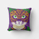 Travesseiro decorativo em uma imagem de um gato fofo enfeitado em uma máscara nas cores festivas de Mardi Gras. A mistura de roxo, verde e amarelo ouro reflete as tradicionais matizes da celebração