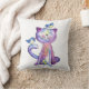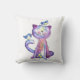Esta é uma pintura mestiça original de um gato branco, feliz, roxo com dois pássaros.