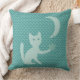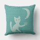 Almofada Gato Brincando com Lua e Estrelas Teal