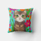 Almofada Gato de Cinzas Bonitas com Flores Coloridas