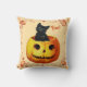 O travesseiro de Halloween vintage imagem de Halloween mostrando um gato muito bonito sentado numa abóbora de uma design Ellen Clapsaddle.