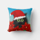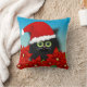 Almofada Gato de Natal em Santa Hat no meio de Poinsettia