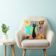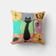 Usando alguns elementos comerciais, criei outro design de gato retrô. Os elementos que acrescentei a um fundo em pastéis e círculos concêntricos. Esta é uma almofada de estilo moderno/travesseiro e ficaria adorável em sua casa.