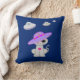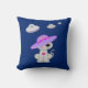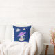 Travesseiro com gato fofo e discos voadores apenas na parte frontal em fundo azul real.