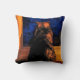 Este travesseiro decorativo decorativo caracteriza um gato lindo do ouro, o alaranjado e o marrom da concha de tartaruga que olha fixamente para fora a janela em um céu azul da meia-noite. Molda uma sombra no windowsill de madeira colorido ouro. A imagem é repetida na parte traseira.