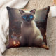 Almofada Gato Siamês do Halloween Com Pumpkins Assustado