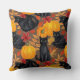 Padrão pintado à mão com gatos pretos, abóboras e folhas de outono. Mídia mista - pintura digital e aquarela.